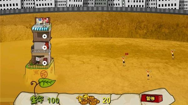 3、游戏玩法是塔防射击那一套,不过加上了钉子户和拆迁队这种搞笑设定,玩起来更有意思。
