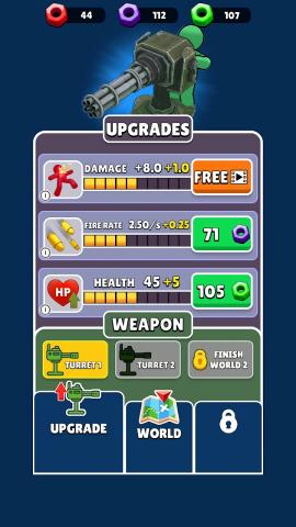 1、简单的操作方式,玩家只需点击屏幕即可控制炮塔。
