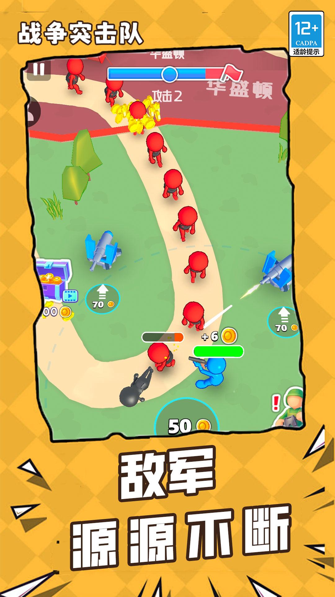 敌人的攻势会不断发动,你要用火力打败他们,才能打败它,赢得比赛。