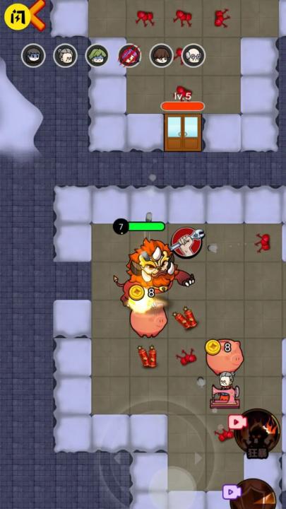 1、单挑年兽:玩家升级缝纫机可以获得金币,升级门可以增加门的防御功能。