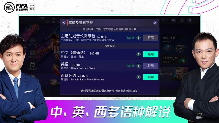加入英语和西班牙赛中解说,感受更多样的足球文化。