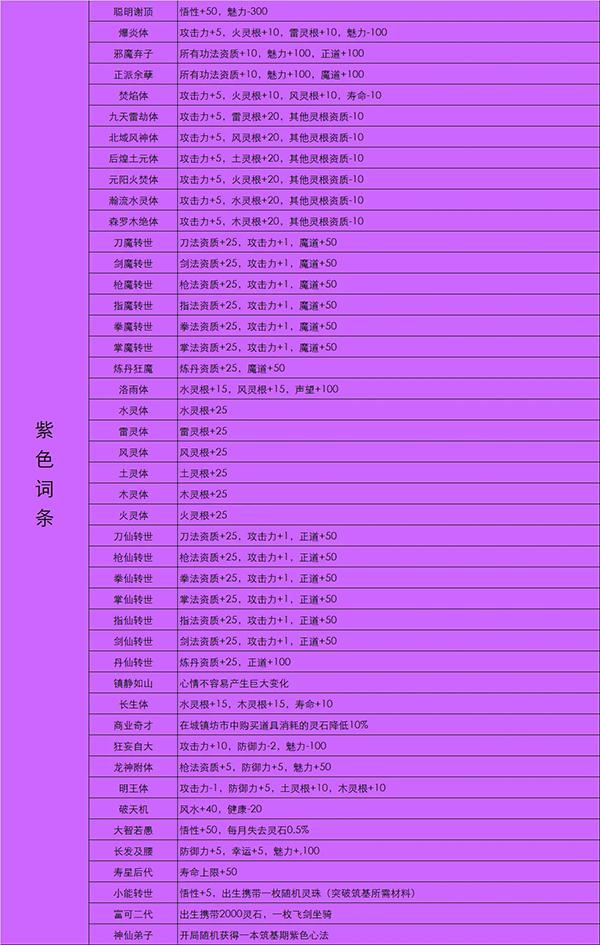 3、鬼谷八荒的每个门派基本主修两种或者三种属性,例如“圣木龙教”从名字前三个字我们通过上面的对照信息就可以判断出,这个门派主修指法、木灵根、枪法三种属性。“古刃派”可以判断出主修木灵根、刀法两种属性。
