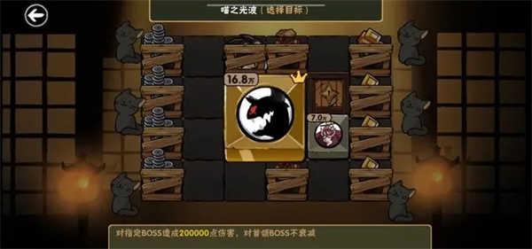 ② 6只黑猫发动暗之光波:对指定BOSS造成200000点伤害,对首领BOSS不衰减(搭配任意猫依次递减)