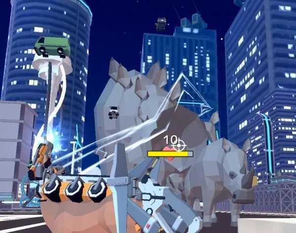 在度过前面几波的警察攻势之后,高难度的BOSS挑战就来了。常规BOSS是城市中央的一个巨大电鳗,这个电鳗在建筑物中央的水池里面只漏了一个头出来。那么在打法上,玩家就要利用推进器在空中进行攻击。因为电鳗是无法离开水面的,所以直接拉开距离攻击即可。不过半血之后要注意大范围电击技能的躲避,稍微拉一下高度就可以了。