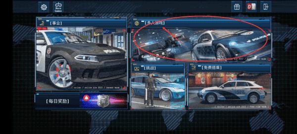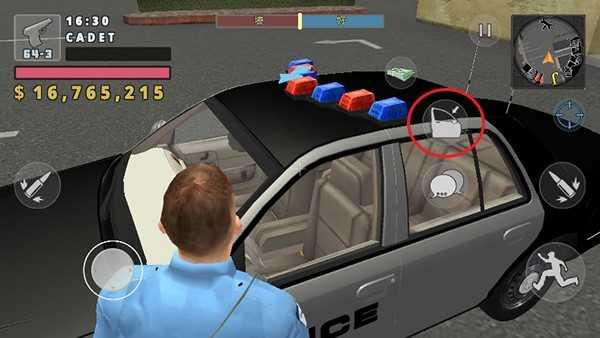 玩家到停车房可以进行车辆的驾驶,靠近车辆点击车门图标即可开始驾驶,此时玩家就可以去街上寻找罪犯并且将他们逮捕。