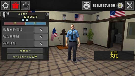 玩家点击改变统一下方的即可进入商店,可以购买警棍、摄像头、防弹衣等物品。
