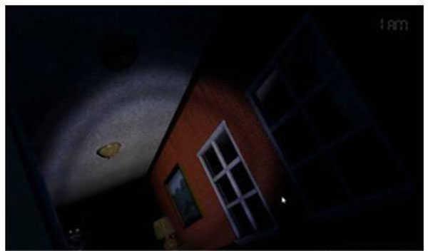 3、注意两点:一是玩家长时间不动的话,会有玩具熊出现直接吃掉玩家,二是一直只关门不开灯照外面的走廊的话,也会有熊出现吃掉玩家。(这一关除了熊的喘息声外多了脚步声,玩家要及时判断声音的来源,然后去关门不让熊出现在屋内。)