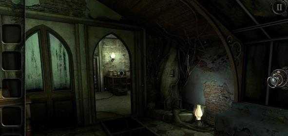 先从行李箱中获得透视镜,如果没有透视镜,一切谜题也无法解开。然后再用透视镜观察木盒子内部并试图重组锁门,成功后木盒子的锁门将重新出现,此时就可以用钥匙直接开启。成功打开箱子后,画面一闪就来到一扇铁门前,此时先不要急着开锁,不妨先打开门上的小窗从远处窥探一下房间里的状况。