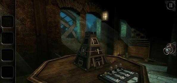 首先发现一个道具,把它安装在最前端的一个塔楼上,进入内部解谜。