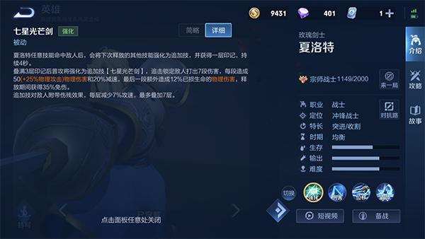 1、任意技能命中敌人后,叠加一层被动,当叠满三层被动后,下一次攻击升级为强化攻击(7段伤害,第七段是百分比的斩杀伤害),并且在释放期间获得35%的免伤。