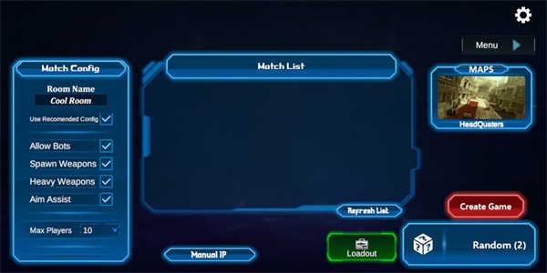 游戏初始界面点击Custom Game-Room Name(可设置房间名字)-MAPS(地图选择)-点击右下角Create Game即可创建房间!(注:因游戏官方原因,可能会出现无法联机现象,请耐心等待官方修复)!