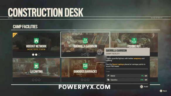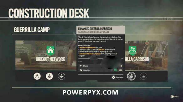 游击队驻地:为游击队战士提供更精良的武器喝更更高效的训练,另外,使用制高点处的侦查电脑可疑获取国防军基地的情报信息。