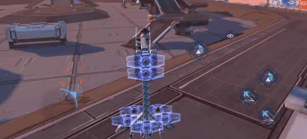 2、其次是我们在前面提到的磁暴,在核心的前面方块摆放一个盾上方就是一个磁爆,防止敌人落下的时候用钩爪爬上来。