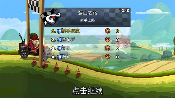 1、打开登山赛车2游戏,在页面左上方点击按钮