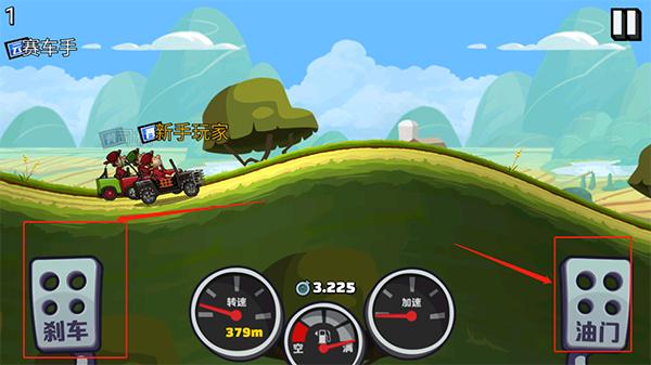 2、我们通过点击游戏来加速,而刹车则是在下坡路段速度控制不住时派上用场,从而来保持小车的平衡。