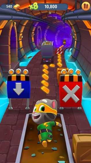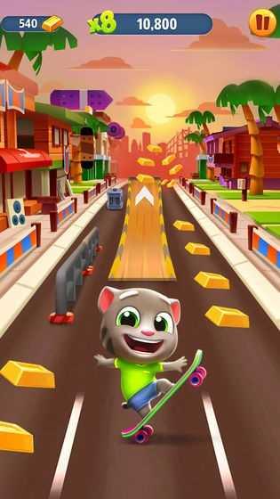 跳跃、滑动和躲闪是《汤姆猫跑酷》最基础也是最重要的操作。会说话的汤姆猫和他的朋友们如同身怀“凌波微步”的武林高手般,在不同的场景中闪转腾挪。无论挡在你前面的是路障、车辆或者水坑,只要及时进行规避操作,便可轻松化险为夷。在此为大家分享一个小窍门:在接触障碍物的一瞬间进行闪避操作,角色并不会“扑街”,只会暂时出现头冒金星的状态,而且绝对不影响后续操作,喜欢玩心跳的小伙伴不妨一试。