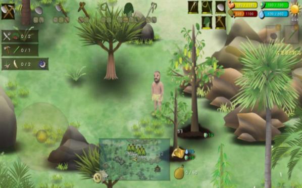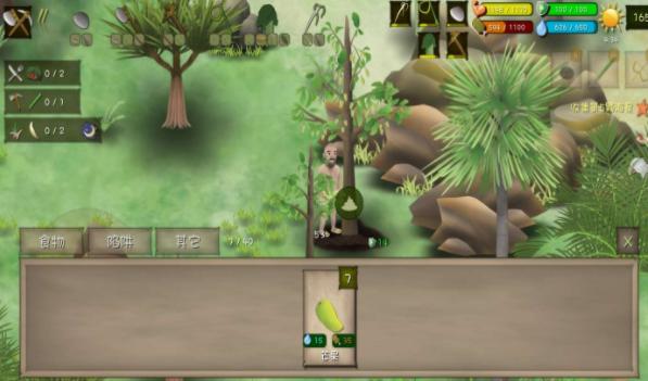 还是以收集材料为主。等材料够了,就可以做小型捕鸟陷阱了。这是前中期肉类食物的主要来源。另外,石刀,石斧,木锄能做就做。最好先做石刀,石斧,因为这可以获取更多有用的东西。木材找不到了就用斧头砍木头,会获得5个木材,再用斧头砍竹子。石刀刮树皮,制作一些道具也要用到。木锄主要是挖坑,采地瓜。