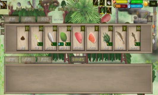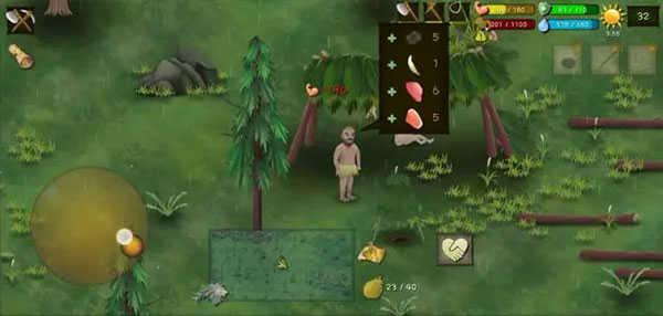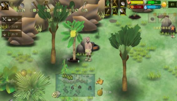 第二天做工具,斧子石刀做出来,砍木头得木材,砍竹子做东西。先去地图左边那里,收集干草,砍木头,薅生姜。第三天去右边的竹林,那里也有许多的资源。