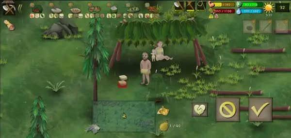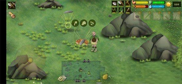 开局先去右上角的池塘,那里可以供应你做营地。营地,篝火先搞出来。篝火到晚上再搭。如果你不用篝火那就可以不搭了,节省一些材料。之后采蘑菇,薅茭白和蘑菇,随随便便吃点维持饥饿度就好了。