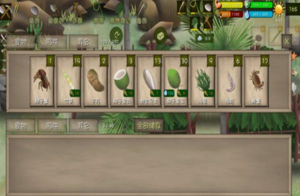 前期可以摘椰子,摘海草,捡贝壳,打四脚蛇,打螃蟹,挖芋艿,挖竹笋,掏鸟蛋。