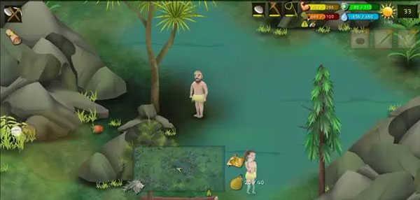 第一天以收集材料为主要的目的。开局先去右上角的池塘边,那里的木头很多,各种各样的材料,食物都有,在前期建议在那里搭建营地。如果去出生点下方的池塘边,那里的野生茭白居多,食物会充足。但推荐先去右上角的池塘。