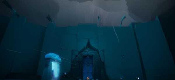 在底层,旅人们四周开始浮现出闪烁的星火。原本半埋在地上的石盘升起成为浮动台阶,墙上的瓦罐散发着点点荧光。初始层和底层都有着隐藏的大门,需要旅人们和小伙伴协作才能打开。