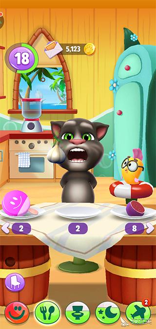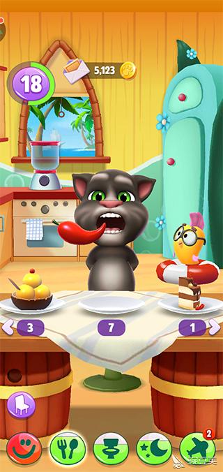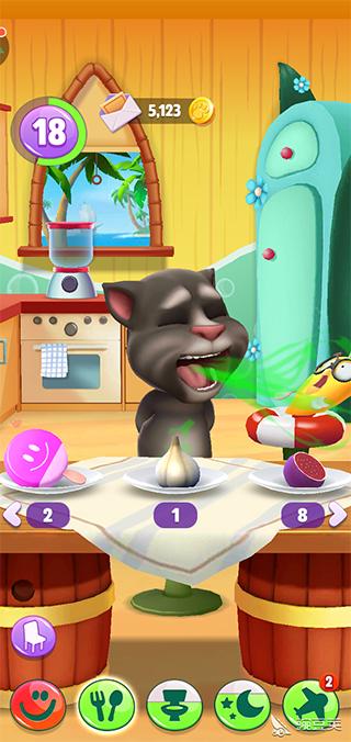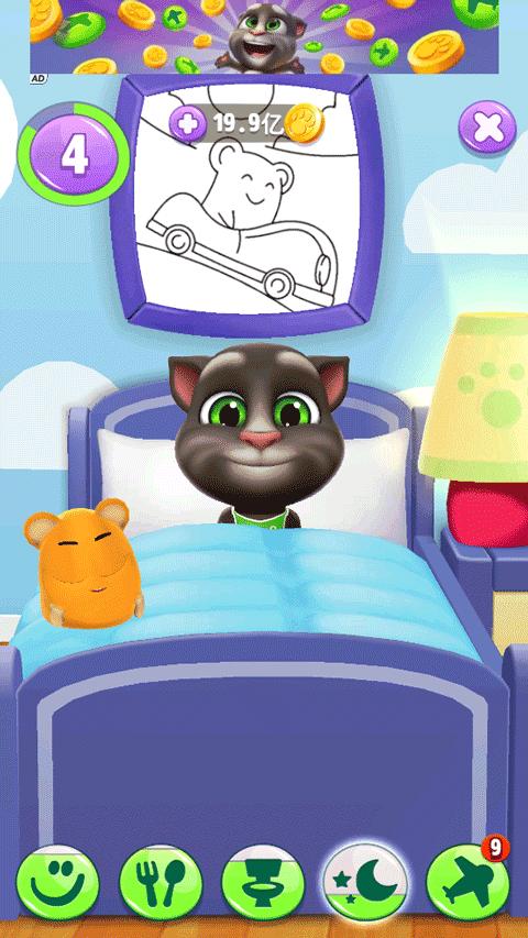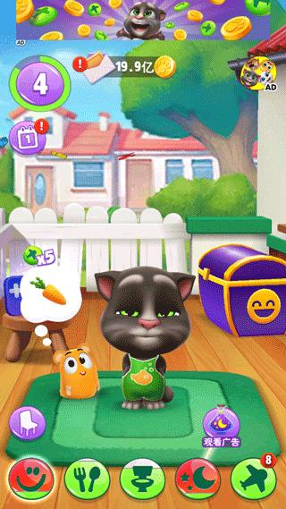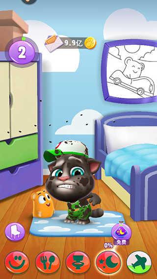 3、系统:(新增)现在可以通过飞行到四大王国抽卡获取所有装扮、家具、食品等;(新增)现在你可以用手指拖着汤姆猫满天飞,然后他会失重摔个狗吃屎,如果你在有天花板的房间拖他往上,他会跟壁虎一样黏在天花板上然后才摔下去;(新增)现在汤姆猫受到打击会先坐在地上再晕倒;(新增)汤姆猫现在会生病,所以相应配了个医疗箱;(新增)现在汤姆猫自己也有宠物了!而且汤姆猫特定情况下会虐它(比如你拖着鸟放他怀里);(新增)现在汤姆猫吃特定食物会有不同反应(目前只发现蒜头、冰棍、辣椒),宠物吃不同颜色食物就会变颜色;(新增)汤姆猫现在主要货币是蓝星和金币,但蓝星不能买汽油;(新增)汤姆猫洗澡有了浴缸和三种肥皂,而且他会在浴缸里放屁;(新增)汤姆猫在室外有了自己的消遣方式(包括秋千、蹦床、投篮、打沙包、打架子鼓);现在玩小游戏只能加蓝星,金币获取方式大概只有飞行了;(新增)卧室里多了个衣柜;(新增)后院以及飞机;现在汤姆猫睡觉时就算你切换场景他也不会离开卧室了。