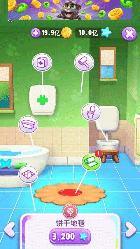 6、如果吃多了,汤姆猫会想上厕所,这时候就需要到浴室点击马桶,汤姆猫就会自己去上厕所了。