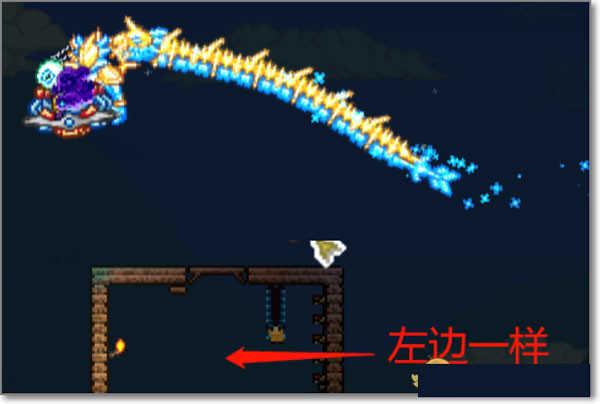 1、首先搭建一个战斗平台,最好在npc居住的环境之上,宇宙之下,长度最好超过100格(有助于后期打新三王中的魔眼和硬长直);