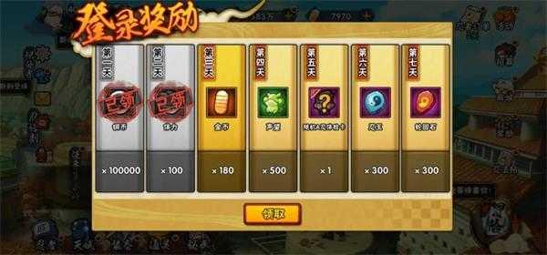 2、上线送满V,88888忍币,1000万铜币,让你十连抽到手软