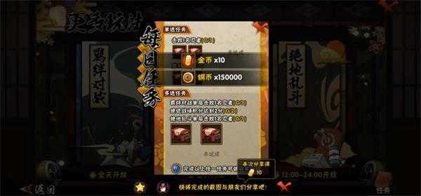 另外每周首次分享忍法帖,还可额外获得10金币奖励哟~