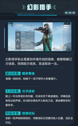 随着《和平精英》全新版本的正式上线,新颖有趣的“起体对抗”也将与广大特种兵见面,在该玩法中,特种兵可以选择不同的职业,搜集“超体晶元”进行职业升级,解锁并使用职业技能。让我们一起去了解一下全新上线的“超体对抗”玩法吧。在“超体对抗”玩法中,特种兵在等待游戏正式开始时,可以自由选择喜欢的职业。目前,一共有八个职业可供特种兵进行选择。需要提醒特种兵的是,在四人小队内,选择的职业不能重复,这就需要小队开麦交流,根据自己的特长和偏好,给团队选择一组实力强劲配合默契的职业组合。在“超体对抗”玩法中,每一个职业角色均有被动、主动和终极三个专属的职业技能。特种兵需要灵活使用这些能力,相互协助配合,才能更好地赢得胜利。下面给大家带来八个职业的详情介绍。