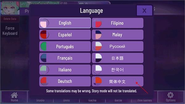 进入游戏后,在主界面点击右下角【爱心图标】,可以设置【简体中文】
