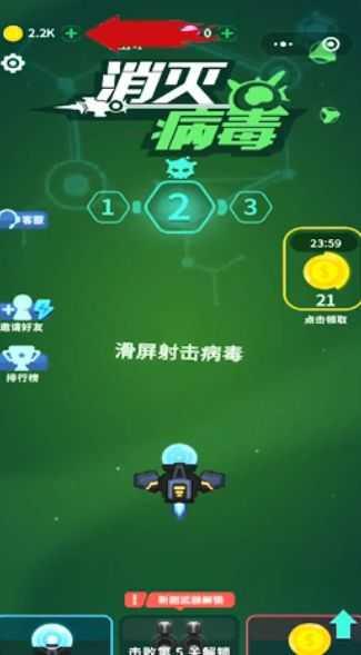 5、简单直观的操作模式,不断地去击杀病毒,升级你的武器。