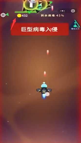 3、设置好后,点击屏幕开始,玩家需操纵飞行器进行射击,并通过滑动屏幕来消灭病毒;