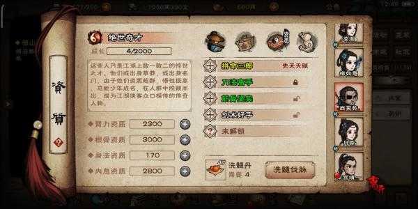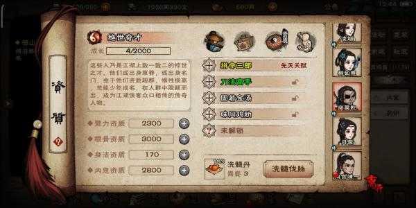 孟翔:孟翔要在完成专属任务后获取,是目前平民最佳的伙伴,非常理想的输出,而且孟翔的武学资质非常强,建议学刀