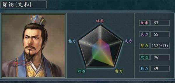 我们第一个要说的是处于曹魏在野有着阴毒之士称号的贾诩。贾诩虽然是曹魏的在野武将,但他的相性是所有曹魏在野武将之中与曹操差值最大的,所以导致他一般都是曹魏搜索武将时最后一个被发现的武将,所以这也很容易导致贾诩频频出现在武将推荐的剧情之中,如果很多小势力有幸能遇到这位武将被推荐,那么一旦能够拿下他那就离反攻之路不远了。