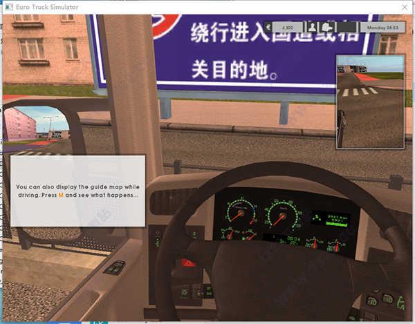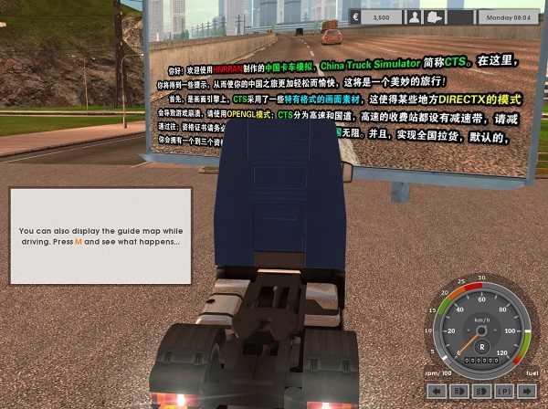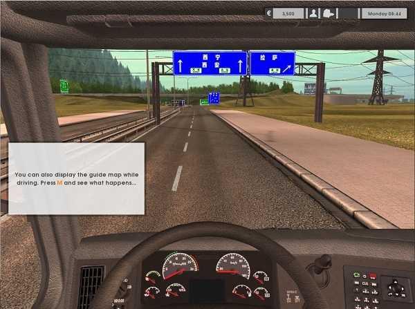 选择城市如济南,点开始,用← →选卡车价格,钱数必须低于手中现有钱数,开车右拐,按M键,1次为右反光镜,2次或3次为卫星导航图,注意地图上有中国电信(福州为中国石油、瑞丽为伊利)字样的地方,左拐,进去,↓处按enter键,选择送货地点,货物,如上海,在集装箱处卡车后背对集装箱,按T装货,货物拉到上海在地图找ups地,↓处按T卸货,卸货位置要对准,加油站加油,必须按E键熄火,按enter键,加油。在zzz处,也必须按E键熄火,按enter键休息,睡觉。在扳手处可修车。M键可看导航地图,按+放大地图,按-缩小地图,导航图有加油站标记,M键可看资格证书和紧急求援,N键卫星定位系统有始发站(可选择货车车型)装货,卸货,加油站等标记。其他问题在游戏设置中寻找。