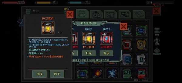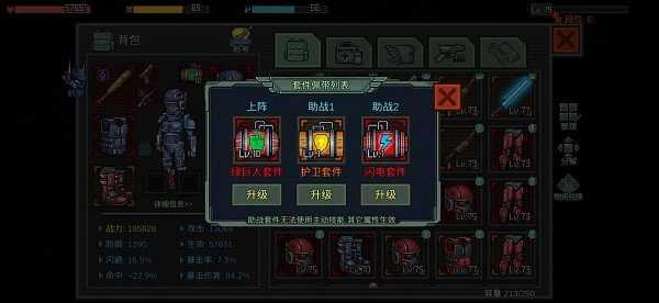 套件的品质主要能够使用到的是蓝色、紫色、金色还有红色,红色的套件拥有的而两个传奇属性十分的实用。使用升级材料可以升级套件,获得更多的属性加成。