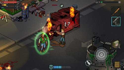 1、进入游戏后,我们会在地上捡到一根棒球棍,这就是我们的初始武器了,直接点击屏幕左下角的攻击按钮就能自动攻击自己身边的僵尸。