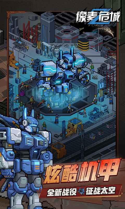 《像素危城》征战太空正式启动,在完成与陆地丧尸的作战后,幸存者们可以与来自太空的怪物进行对决。征战太空有专属的机甲,机甲一共分为六个身体配件:盔、电池、服、裤、手和靴。
