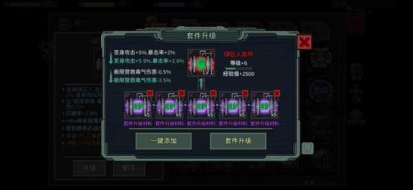 绿巨人套件能让主角变身绿巨人,大幅提高攻击力和暴击率,并且免疫持续性伤害。