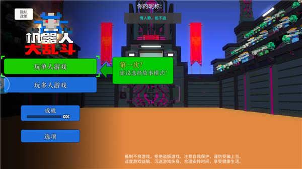 1、下载安装机器人大乱斗手机版中文最新版并且进入游戏,可以看到单人和多人游戏供你选择;