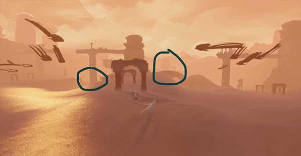 然后朝山的位置走,会逐渐发现前方有一些沙漠废墟。