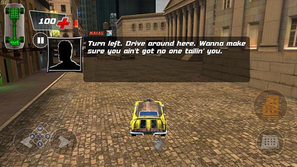 1、游戏操作:玩家操控非常简单,左下角的两个箭头按钮,分别是向左和向右,要配合右下角的油门的按钮(长方形)才能实现向左转和向右转,正方形的是车辆倒退按钮。