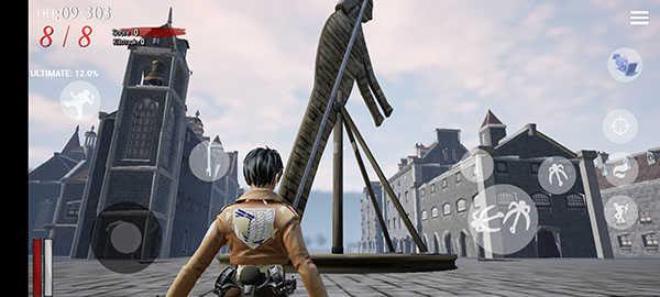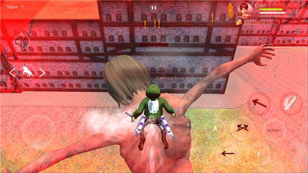 2、长按绳索就能不断的往那个方向飞行,飞到巨人的后颈位置。