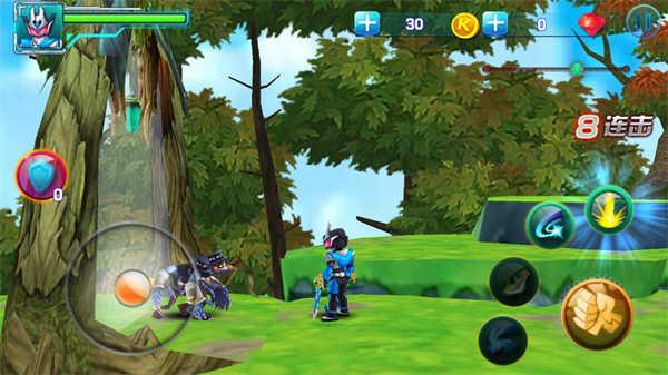 4、然后进入游戏左下角可以控制角色跳跃,右下角发动进攻;