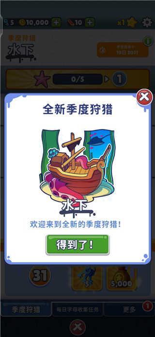 2、全新的赛季福利,水下季度狩猎上线,穿越海底世界,收集海星来解锁角色滑板,不断的升级领取奖励。