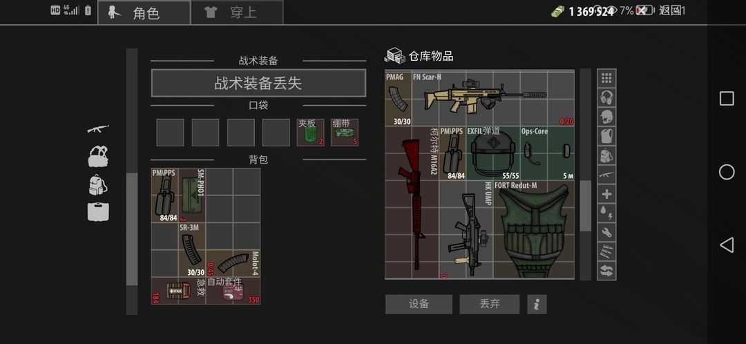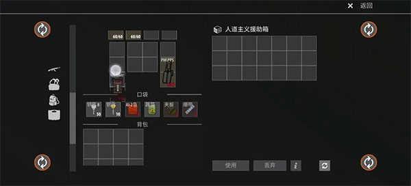 回到安全区,把背包装载的弹匣和医疗用品都放到战术背心,给后面的高价值物资留在空间。