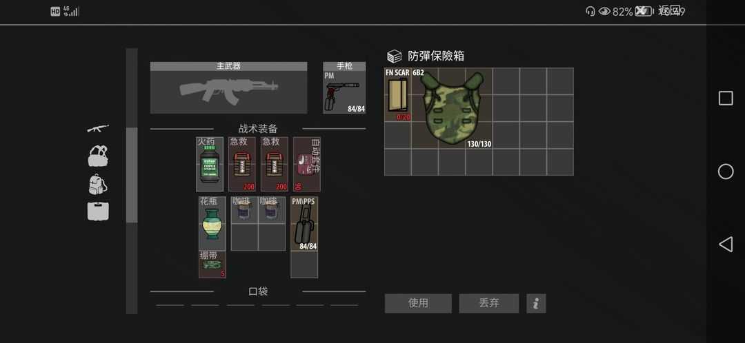 白手起家(头盔、战术背心、背包、副武器、少量的药品)